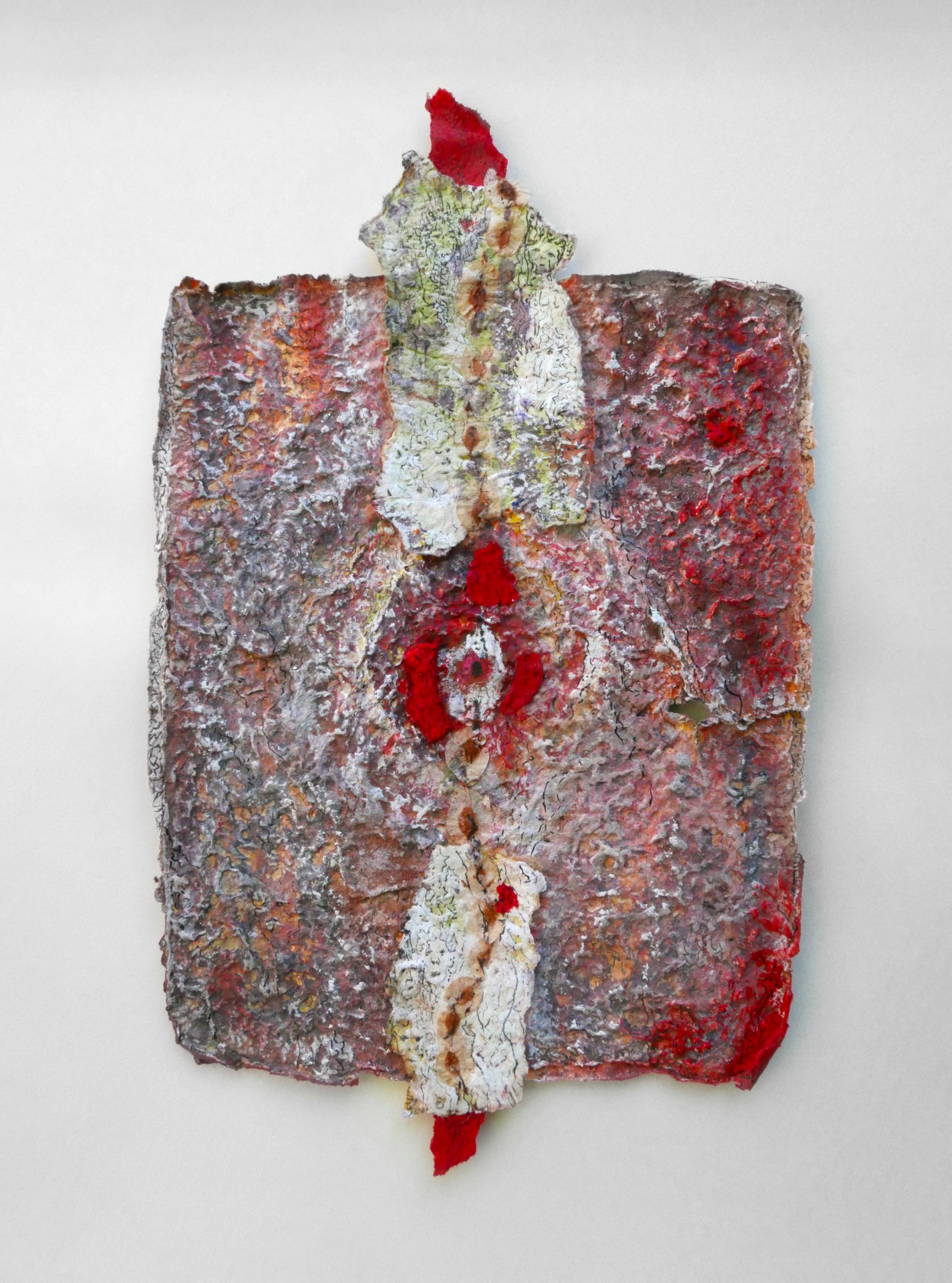 J'éprouve alors la nécessité de transcrire cela en mêlant les matières les couleurs et les végétaux, cailloux, sable ou autres fragments...